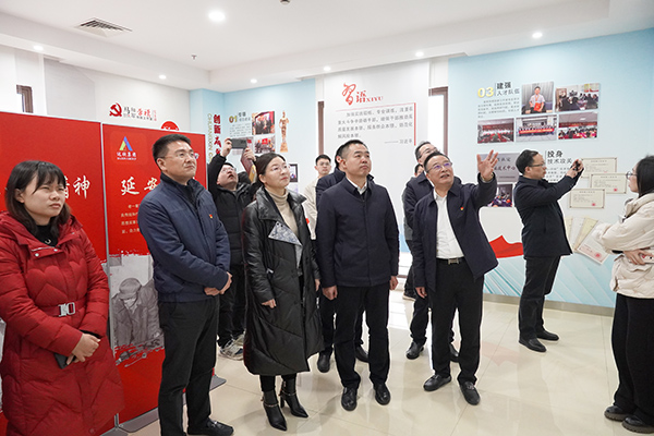 調(diào)研組一行參觀了集團(tuán)展示中心和馬和軍勞模創(chuàng)新工作室黨支部,觀看了企業(yè)黨建宣傳片,了解了集團(tuán)四十多年的發(fā)展歷程,以及集團(tuán)黨委通過實(shí)施“四四三”黨建工作法實(shí)現(xiàn)企業(yè)黨建“量化、細(xì)化、標(biāo)準(zhǔn)化”,多措并舉將流動(dòng)黨員牢牢凝聚在黨旗下的生動(dòng)案例。何長(zhǎng)表示,達(dá)欣黨委針對(duì)建筑行業(yè)黨員流動(dòng)性強(qiáng)的特點(diǎn)精準(zhǔn)施策,銳意創(chuàng)新,借助企業(yè)“微黨建”使達(dá)欣流動(dòng)黨員紅旗鐵軍隊(duì)伍在企業(yè)攻堅(jiān)克難、科技創(chuàng)新、轉(zhuǎn)型升級(jí)等方面發(fā)揮了巨大作用,將企業(yè)黨建工作的“痛點(diǎn)”、“難點(diǎn)”轉(zhuǎn)化為成果總結(jié)的“拐點(diǎn)”、“亮點(diǎn)”,形成了頗具借鑒推廣意義的創(chuàng)新工作模式。
