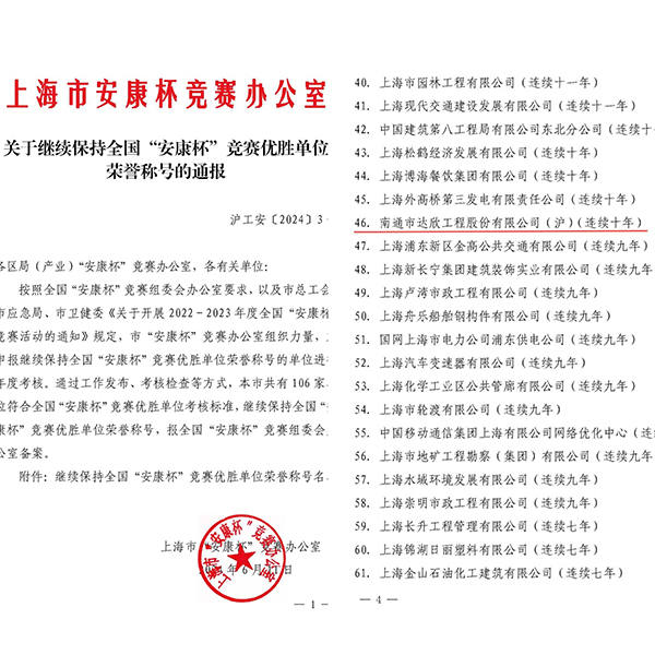 日前,上海市“安康杯”競(jìng)賽辦公室滬工安【2024】3號(hào)文件,對(duì)獲得2022-2023年全國(guó)“安康杯”競(jìng)賽優(yōu)勝單位榮譽(yù)的集體進(jìn)行通報(bào),達(dá)欣集團(tuán)連續(xù)十年被評(píng)為全國(guó)“安康杯”競(jìng)賽優(yōu)勝單位。