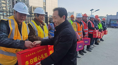 1月13日,南通市總工會黨組成員、經(jīng)審會主任周正秋,南通市總工會權(quán)益保障部部長趙周恒一行,來到達欣集團南通R23005地塊項目建設現(xiàn)場,開展“工會在身邊 真情暖江海”2025年春節(jié)送溫暖活動,為奮戰(zhàn)在一線的工作人員送上冬日暖心禮包和新春的祝福與慰問。