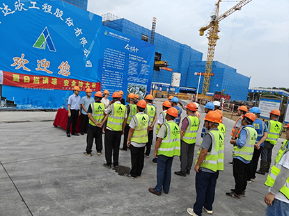 8月7日,海安市總工會黨組書記、主席楊海燕,副主席解杰,建筑工會主席曹寅一行,到海安市黨風廉政教育中心項目施工現場,開展“送清涼、送關懷、送政策”高溫慰問活動。集團總經理王邦國、工會主席馬軍陪同。